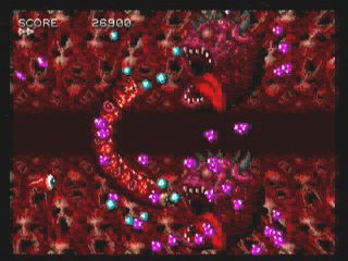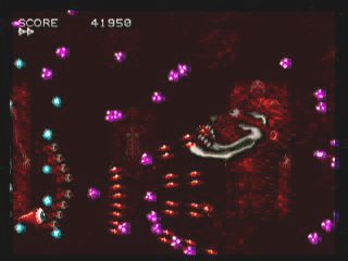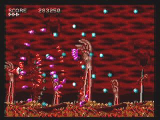 なんと、製作者は本作品を「18歳以上推奨」と位置付けています。 それを裏付ける数々のシーン…これは、この手の映画に免疫を持っている方以外には 耐えられない可能性があります。 (STGなので怖がっているひまはないのですけれども…) ここでは序盤2ステージの画面写真を掲載しています。…たった3枚の写真だけでも、 すさまじさがヒシヒシと伝わってくると思います。 それでも、この作品に惹かれたあなた…どうなっても保証はしませんよ。 |